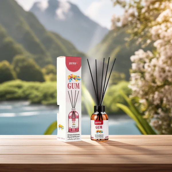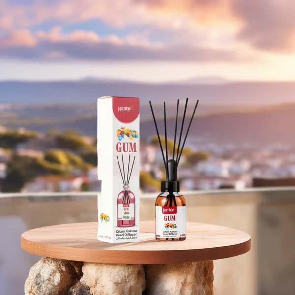 Reed Diffuser -GUM From Jasmine Beauty & Care with various Scents Turkish Reed Diffuser Set with 4 Sticks – 3.72 Fl. Oz (110ml) for Home Office, Bathroom, Kitchen